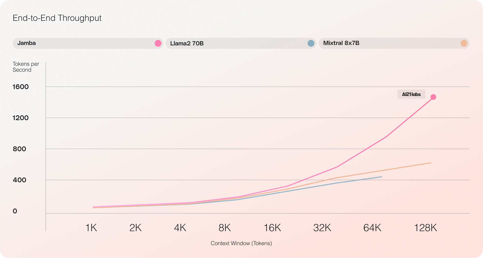 Jamba boasts an extensive context window of 256K tokens, equivalent to around 210 pages of text, while fitting up to 140K tokens on a single 80GB GPU. This remarkable feat is achieved through its hybrid SSM-Transformer architecture, which leverages mixture-of-experts (MoE) layers to draw on just 12B of its available 52B parameters during inference. The result is a model that can handle significantly longer contexts than most of its counterparts, such as Meta's Llama 2 with its 32,000-token context window, while maintaining high throughput and efficiency.