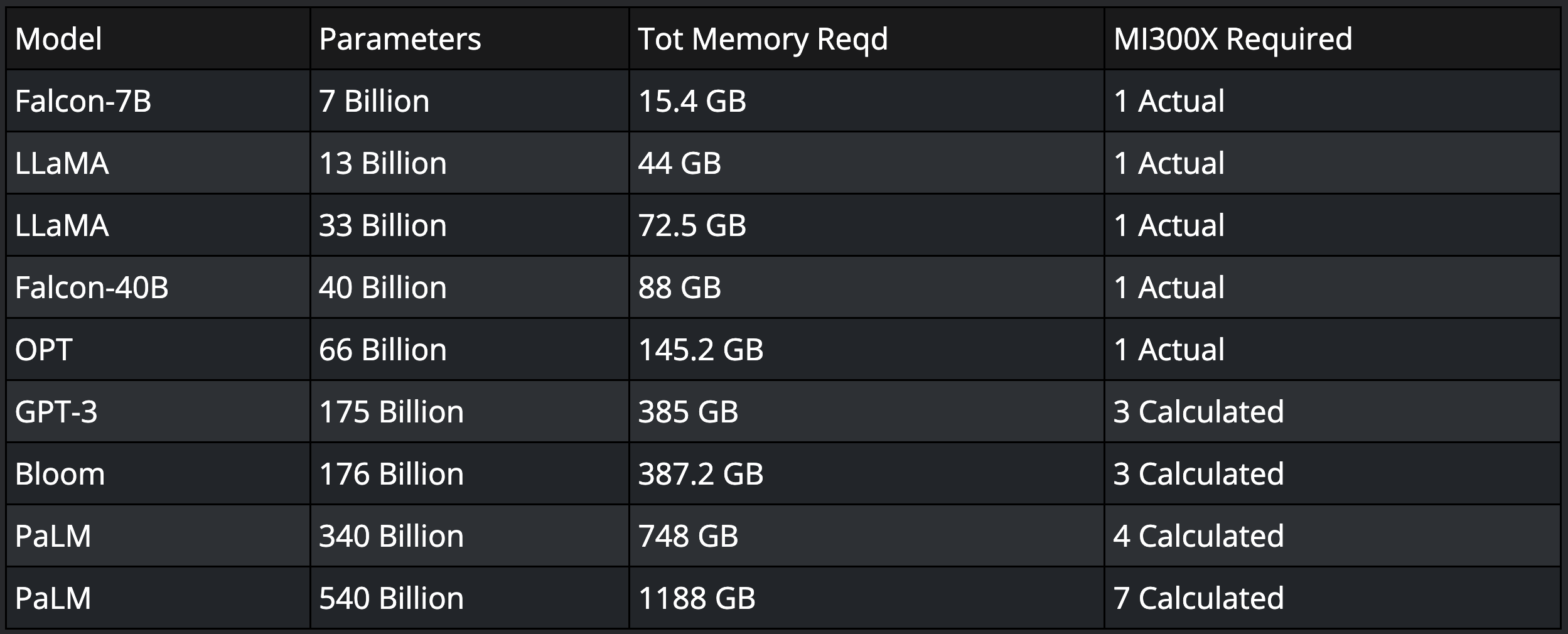 Driving the MI300X Accelerator is a need for more memory capacity and bandwidth to run ever-larger AI models being developed. Compared to previous gen AMD Instinct MI250X accelerators, the MI300X offers 40% more compute units, 1.5x more memory, and 1.7x higher peak memory bandwidth. The top-end configuration packs a whopping 192GB of HBM3 memory delivering up to 5.3TB/s of bandwidth to feed its demanding matrix processing workloads.
