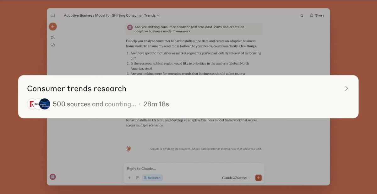 Perhaps more significant is the overhaul to Claude's research capabilities. The new "Advanced Research" feature takes Claude's ability to search for information and supercharges it with much deeper investigative powers.