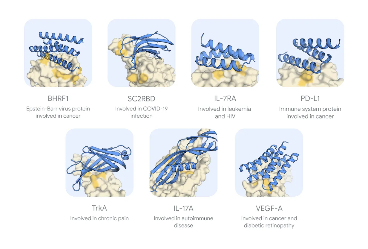 Notably, AlphaProteo became the first AI method to design effective binders for VEGF-A, a protein associated with cancer and diabetic retinopathy. On average, AlphaProteo's binders showed 3 to 300 times stronger binding affinity than the best existing methods across the targets tested.