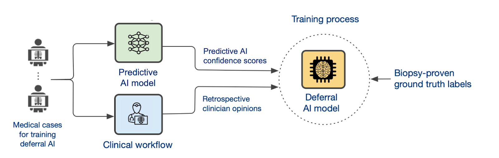 The research presents Complementarity-driven Deferral-to-Clinical Workflow (CoDoC), an AI model that learns when to trust a predictive AI's diagnosis or defer to a clinician. This idea is essential for successfully integrating AI into areas like medical imaging, where predictive models are being rapidly adopted.