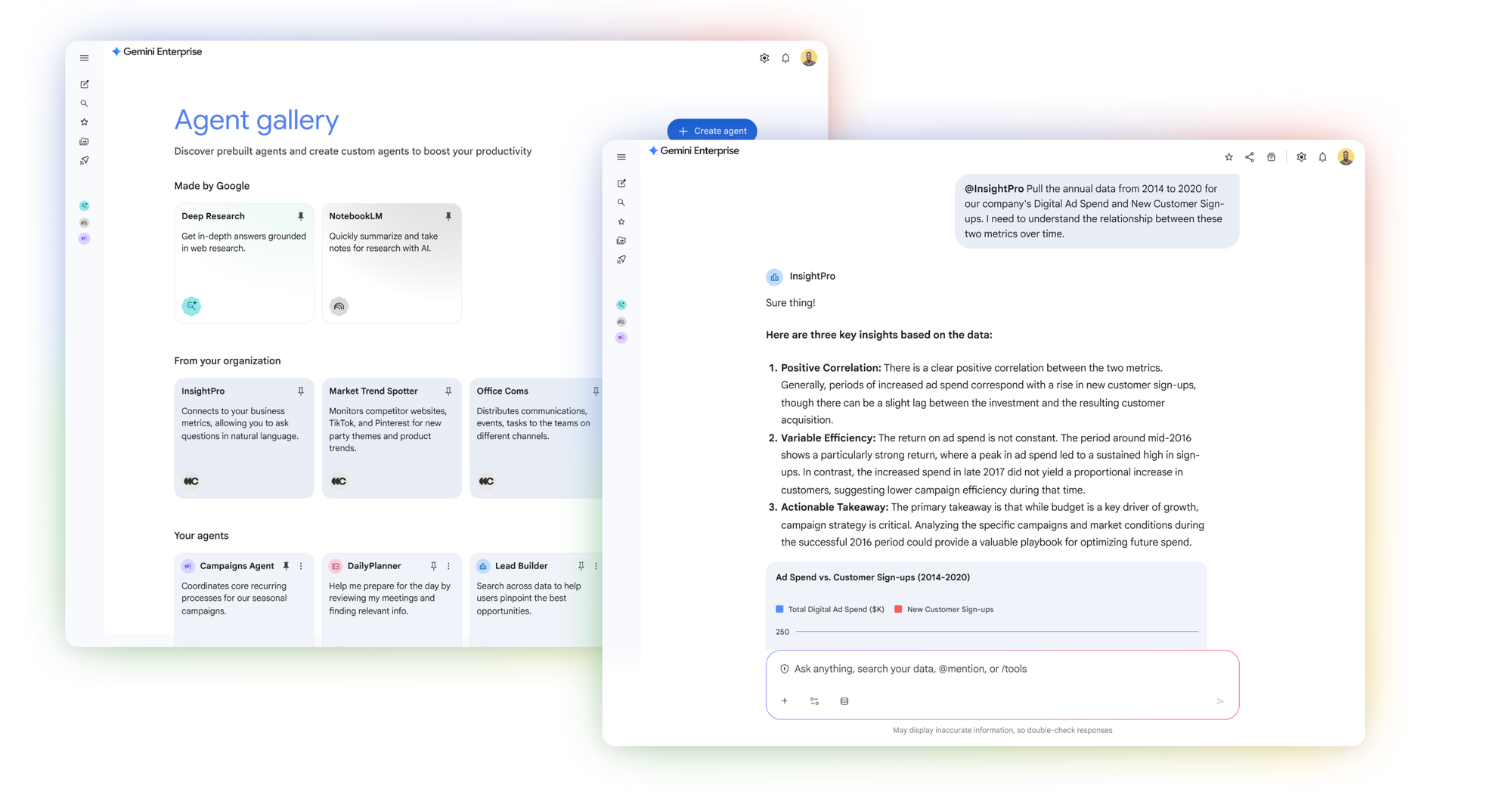 Under the hood, Google is leaning on its latest Gemini models and packaging prebuilt agents (for deep research, data analysis, code, and customer engagement) alongside a no-code/low-code workbench to build and chain custom agents. There’s also a central governance layer for security, audit, and policy—an area buyers increasingly scrutinize as agent deployments scale.