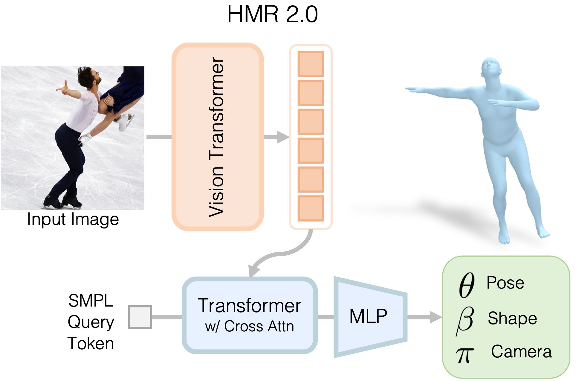 At the core of the system is Human Mesh Recovery (HMR) 2.0, a fully "transformerized" neural network architecture for predicting 3D human meshes from single images. It leverages the powerful self-attention mechanisms of transformers to understand spatial context and estimate detailed body shape, pose, and clothing. The researchers show HMR 2.0 provides state-of-the-art results for 3D pose estimation, significantly improving on previous convolutional architectures like the original HMR model.