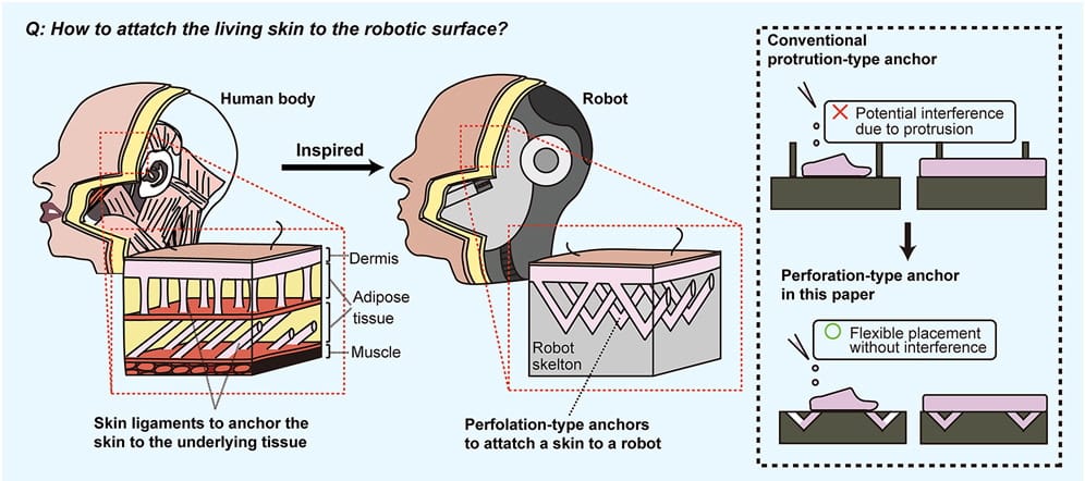 The team, led by Dr. Shoji Takeuchi, developed "perforation-type anchors" inspired by human skin ligaments. These tiny structures let cultured skin bond securely to robotic surfaces, mimicking how our skin attaches to our bodies.