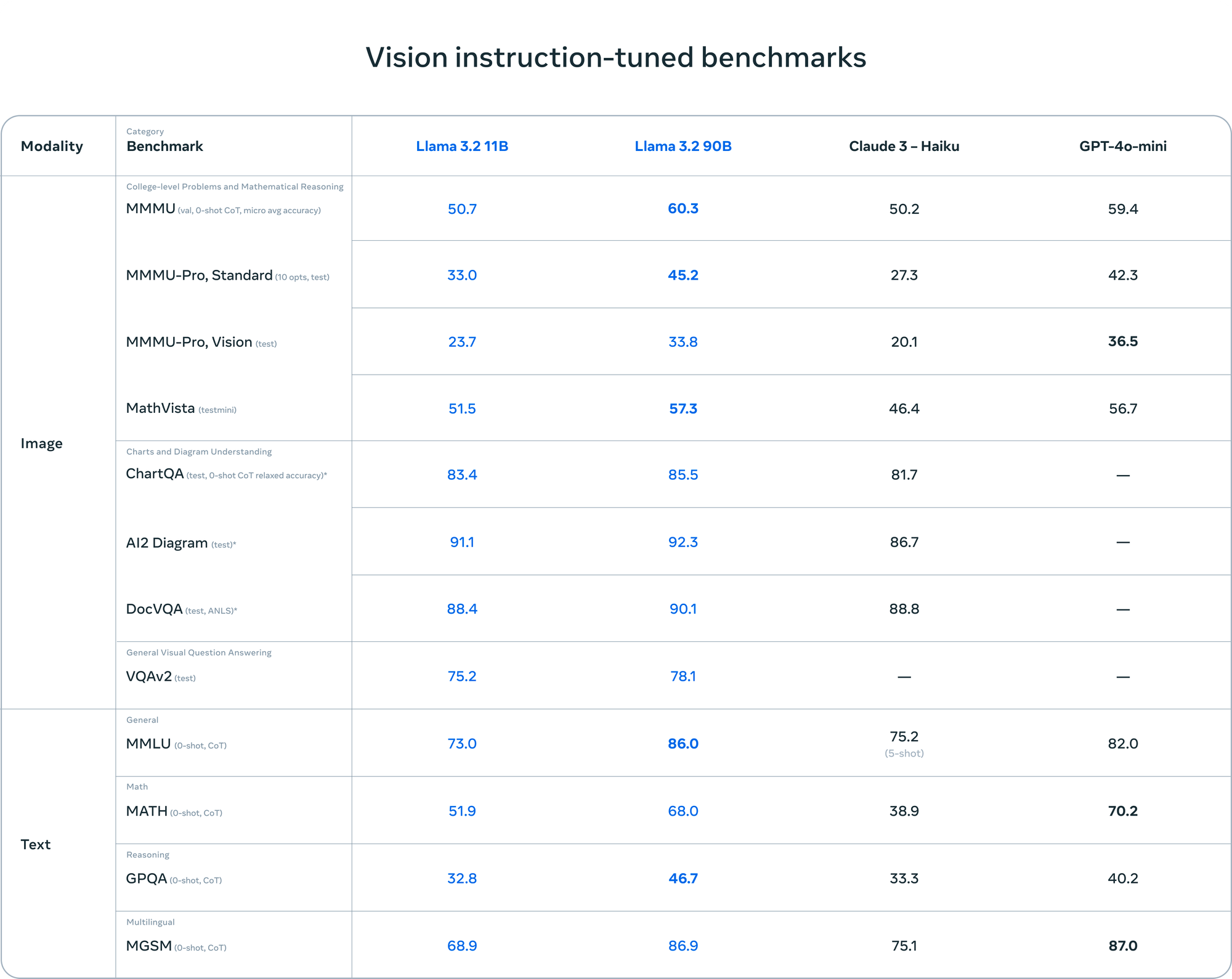 The 11B and 90B vision models are Llama's first foray into multimodal AI. These models can understand and reason about images, enabling tasks like document analysis, image captioning, and visual question-answering. Meta reports that their performance is competitive with leading closed-source models in image recognition and visual understanding benchmarks.