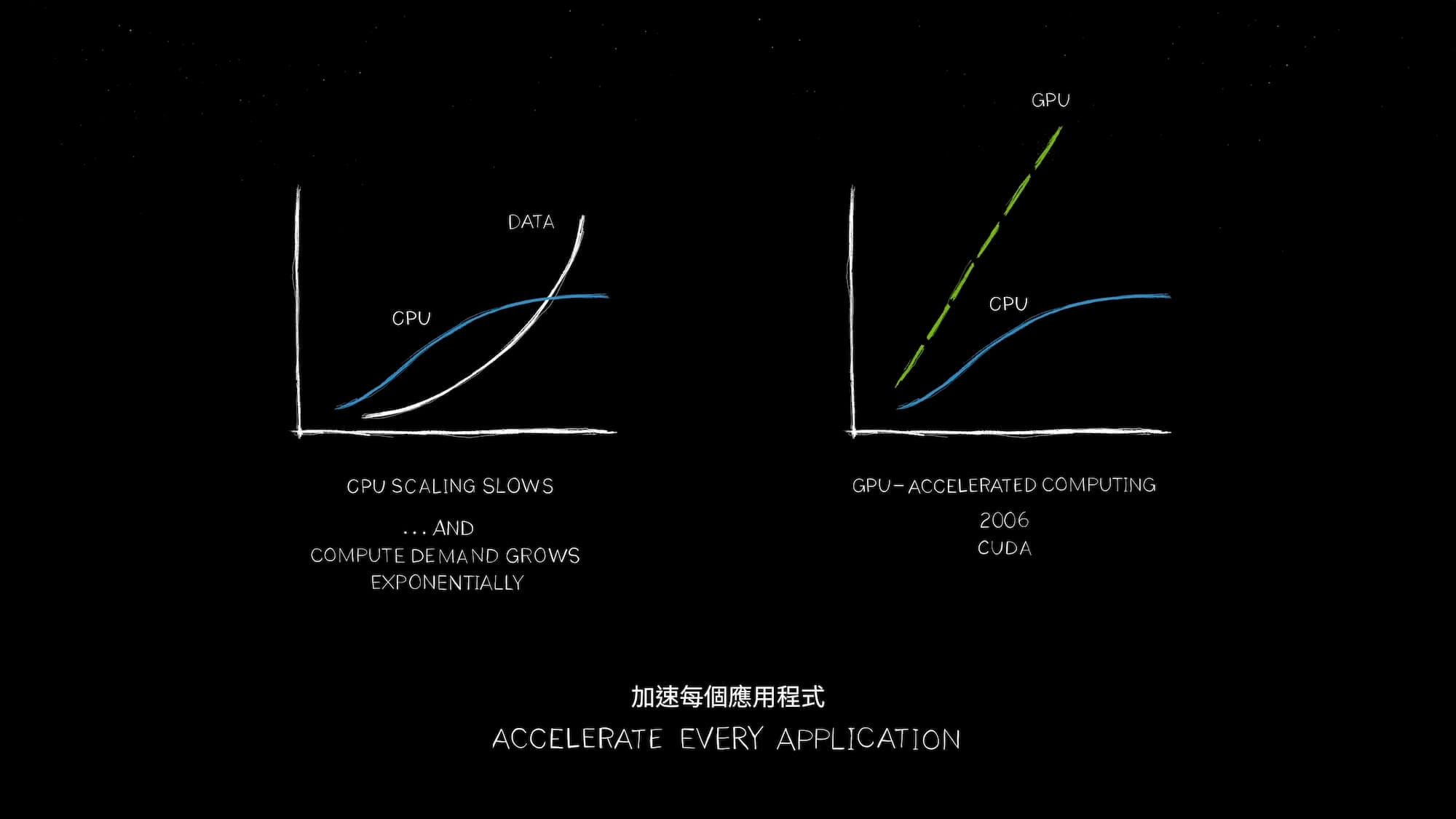 Huang kicked off the keynote by highlighting the transformative impact of accelerated computing on various industries. He pointed out that the performance scaling of central processing units (CPUs) has slowed, while the demand for computation continues to grow exponentially. Huang asserted that accelerated computing, through the use of specialized processors like GPUs, offers a solution to this "computation inflation." He then showed how NVIDIA's technology can provide a 100x speedup while only increasing power consumption by a factor of three, resulting in significant cost and energy savings.