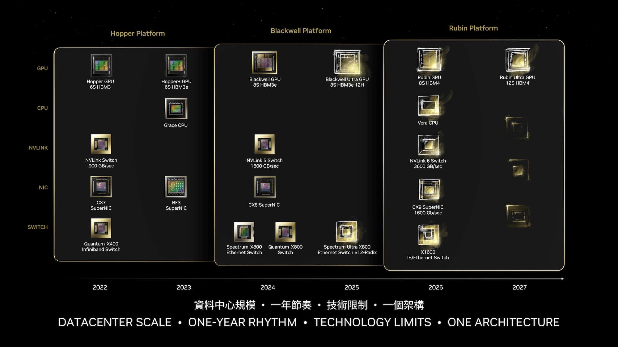The Rubin platform boasts impressive capabilities, including NVLink 6 Switch performance up to 3,600 GB/s and the CX9 SuperNIC providing up to 1,600 GB/s.