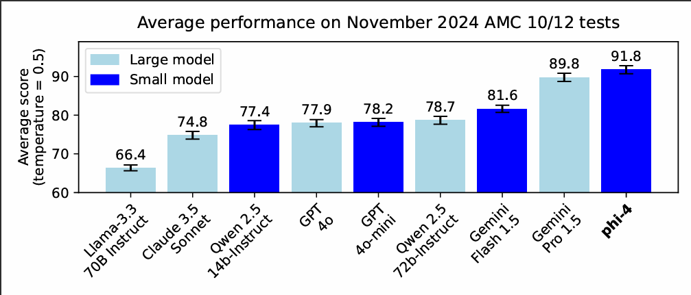 Microsoft just released Phi-4, its latest small language model, that surpasses even frontier models in math reasoning. In a technical report published on arxiv, Microsoft details how they use synthetic data and advanced post-training techniques to achieve superior performance on benchmarks.