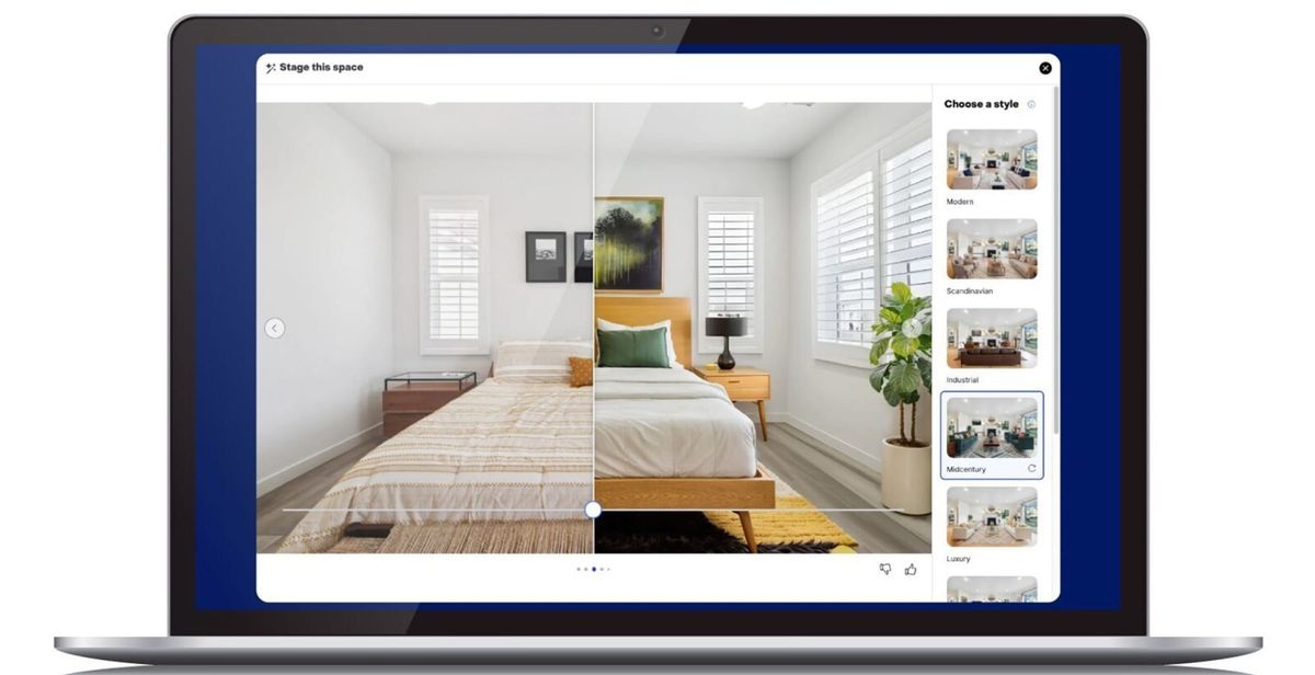 The new feature adds an icon to select listing photos inside Zillow Showcase. Tap it, and you can choose from styles like Scandinavian, industrial, luxury, or farmhouse. The AI instantly transforms the room—whether it’s bare or already staged—and you can slide between the original and virtual version to see the difference. There’s also a refresh button to shuffle furniture layouts for variety, and an option to wipe a room clean so buyers can see it as a blank slate.